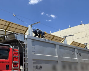 大型トラックの荷台作業でのスムーズな落下防止を実現