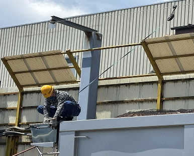 フルハーネスの架け替え不要のシステムを設置することで、安全と作業効率を両立。 現場に応じたオリジナルな安全対策と、品質・納期などバランスのとれたプランをご提案。