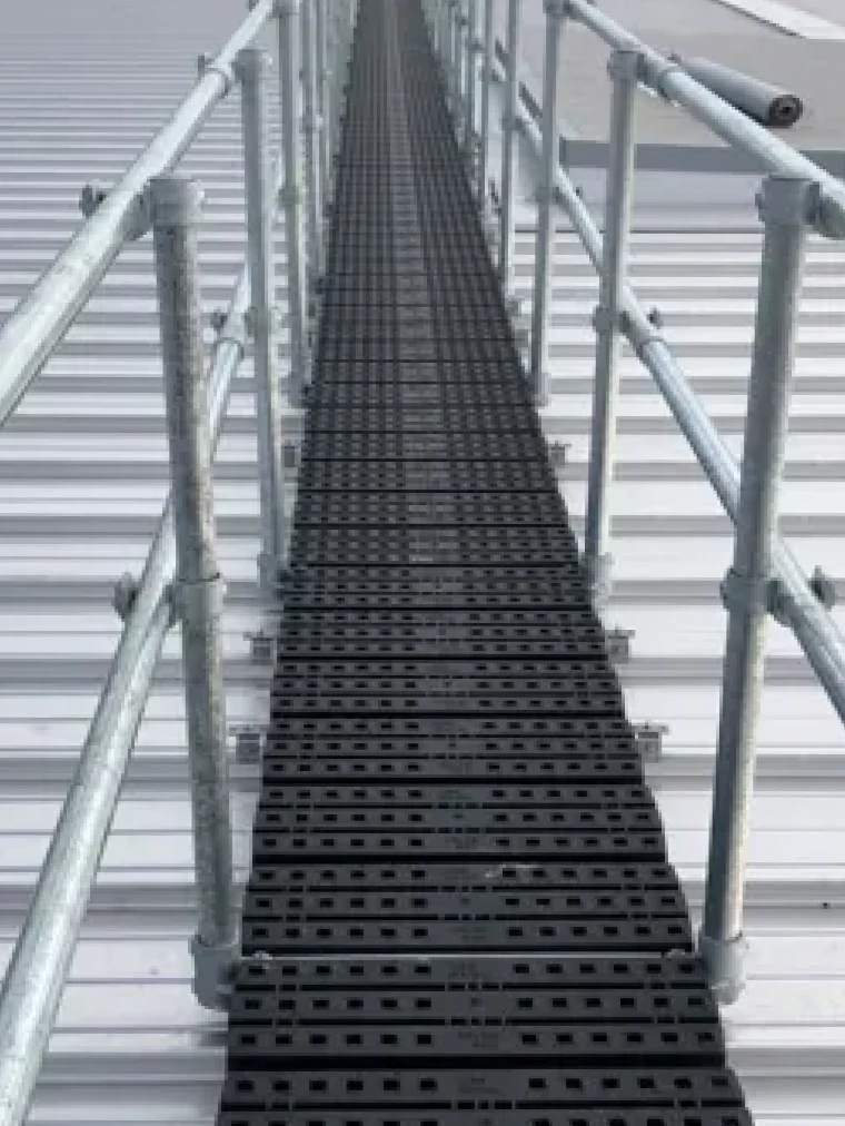 KeeWalkキーウォークは、高所作業の安全対策製品で、作業中に屋根に上がる必要がある作業員に、安全で滑りにくい水平な通路を提供します。