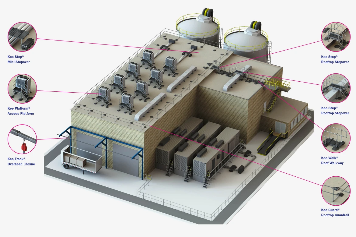KeeStepキーステップは、高所作業の安全対策製品で、配管や空調設備、その他の障害物を安全に越えるルートを提供します。また本製品は、安全性の高い欧米の規格に準拠しており、高い耐久性を備えています。さらに、溶接が不要なため、設置が簡単かつお客様のニーズに合わせて柔軟に設計が可能です。 高所作業の安全対策製品をお探しの方にはオススメの製品です。